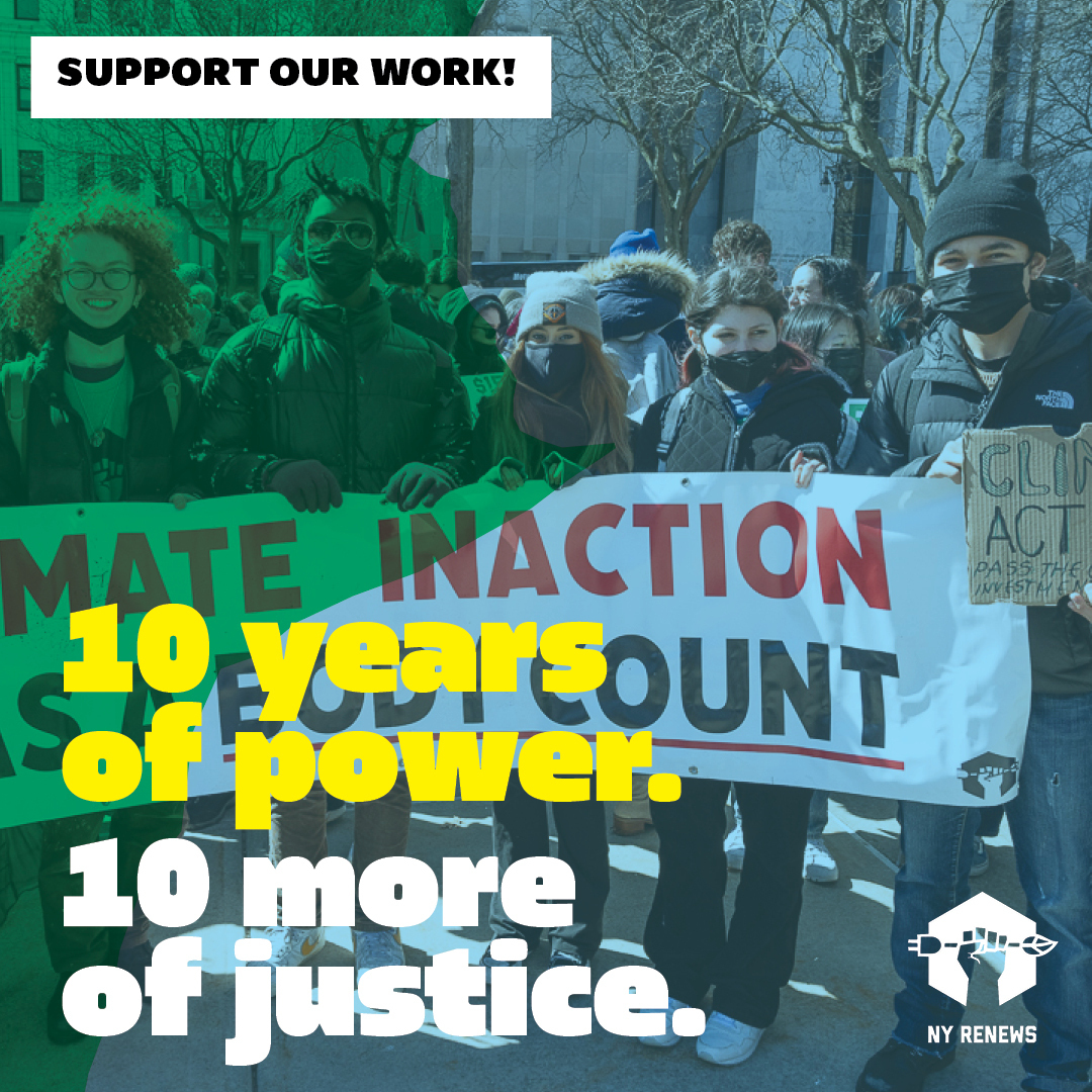 This past December, we celebrated 10 years of NY Renews. Now we will spend the next ten doubling down to transform New York, make our state healthier and more equitable, ensure a just transition for workers, and help create an accessible green economy for all.